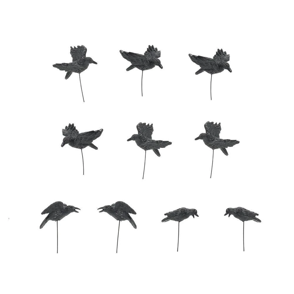 Set of 10 Crows. Each bird is fixed on a bendable wire making them easy to position.