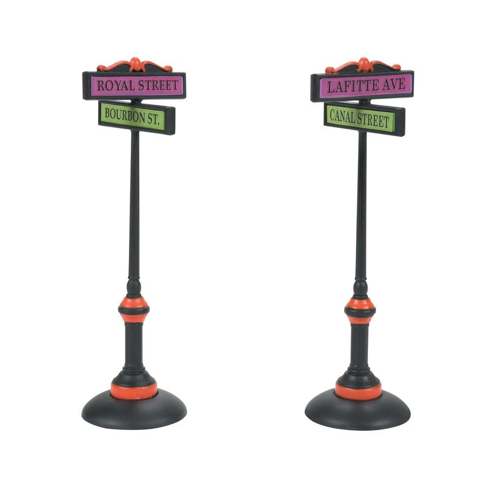 Painted in traditional orange and black, these street signs help trick-or-treaters to find their way, even after dark.